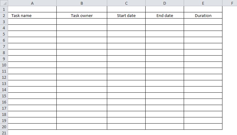 Break your project down into tasks and fill in the table with the details of those tasks: the task name, start date, end date, and duration. But don’t enter all this information manually.
